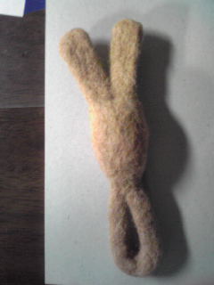 フワフワの綿も状態から針で突っつきながら綿をかためていき作っていきます。
