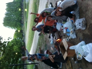 木を集め台を作り~の~ダンボールを燃やし火をおこし~の~なかなか肉を食べるまでに時間がかかりました。